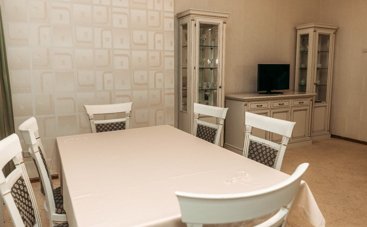 Завтраки, обеды и ужины проходят в светлом просторном зале, где дежурит штатный диетолог. Каждый желающий может проконсультироваться относительно своего питания — специалист ответит на все вопросы и даст персональные рекомендации.